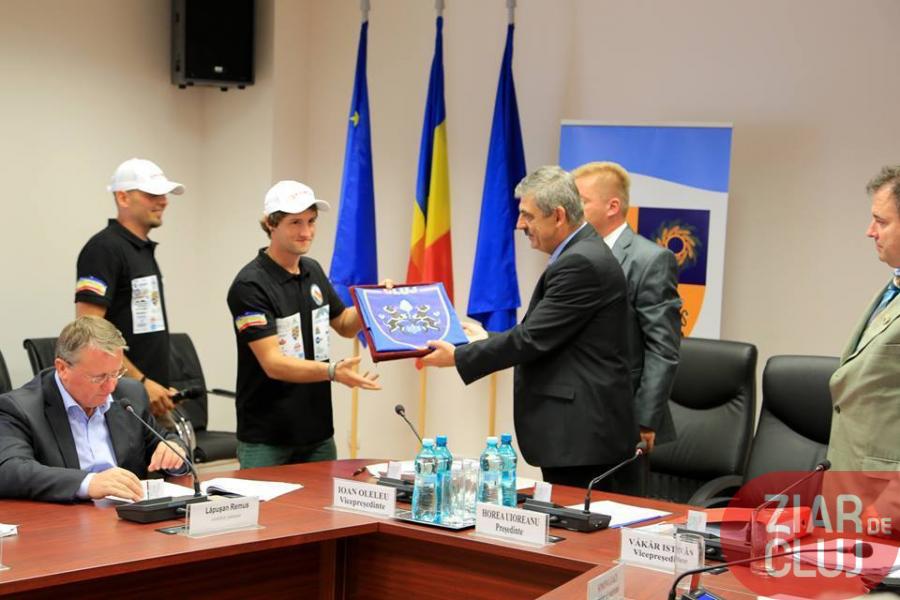 In ultimele zile de vara, Horea Uiopreanu le-a inmanat membrilor delegatiei clujene de alpinisti care au pornit spre Himalaya drapelul si insemnele judetului Cluj.