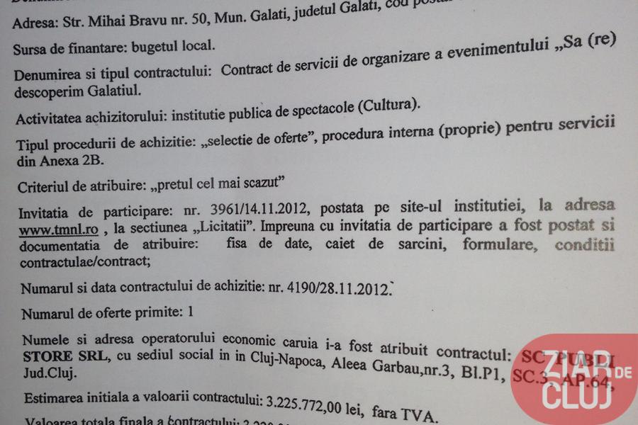 Oferta firmei clujene a fost cu 5.000 de lei sub valoarea estimata a contractului, adica de 3.220.900 lei, evident fara TVA, noteaza presagalati.ro.