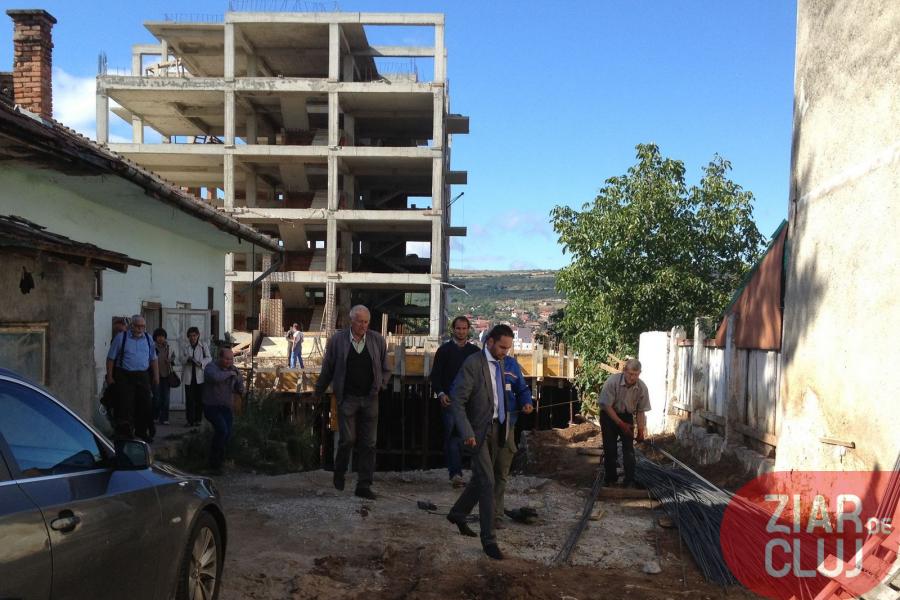 Comisia de control a sosit in jurul orei 16. La fata locului erau deja adunati o parte dintre vecinii nemultumiti, dar si investitorul, iritat de adunarea din fata santierului.
