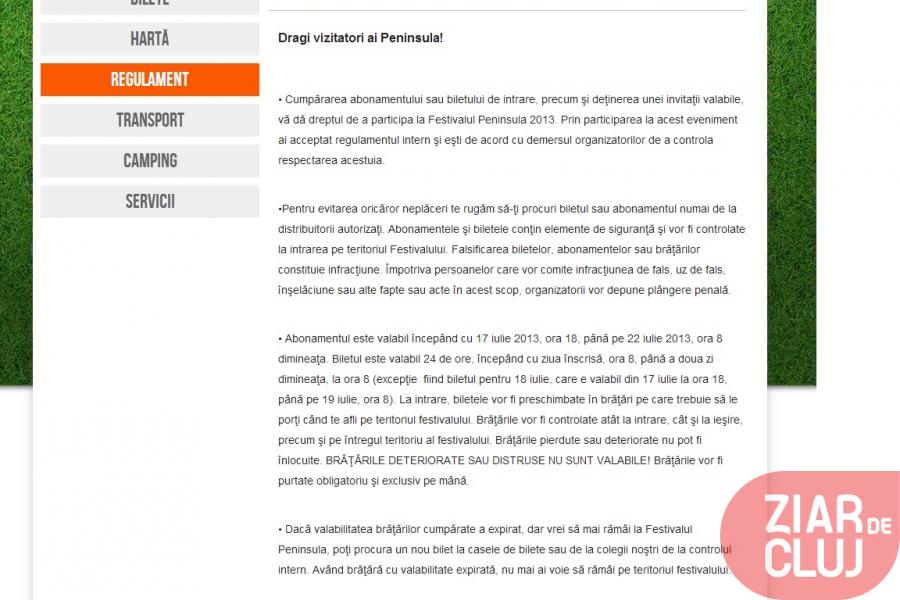 Asa cum se poate vedea si in imaginea alaturata, reprezentantii Festivalului Peninsula nu au trecut in regulamentul festivalului nicio prevedere fata de posibilitatea de returnare a biletelor.