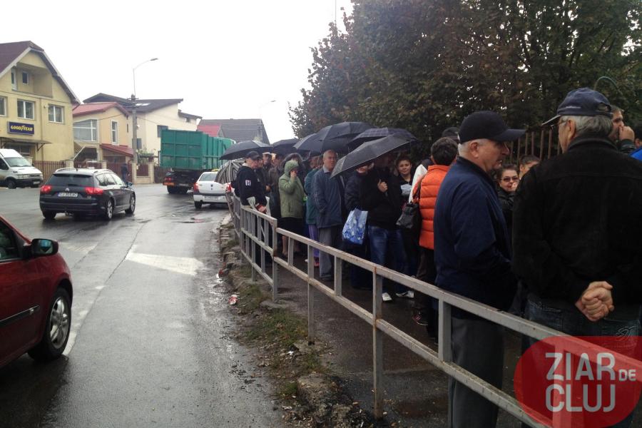 Pe Calea Baciului insa e doar o coada cuminte. Se intinde pe vreo 20 de metri, jumatate din oameni in curtea imobilului unde se face distribuirea, jumatate pe trotuar. Stau cu totii rebegiti, cu sacose pestrite, genti uriase, trolere sau carucioare. Din cealalta parte, ies cativa amarati cu papornite colorate si urca intr-un taxi.