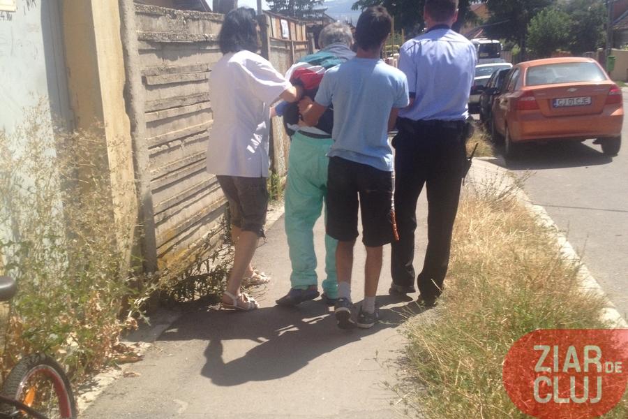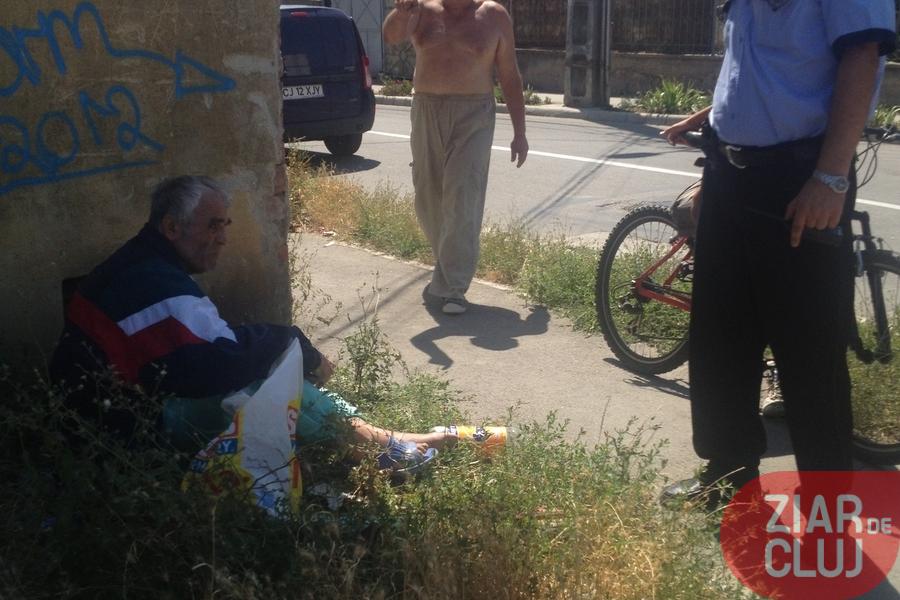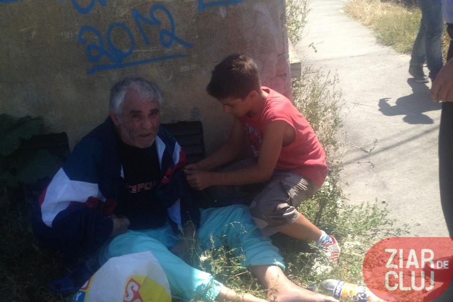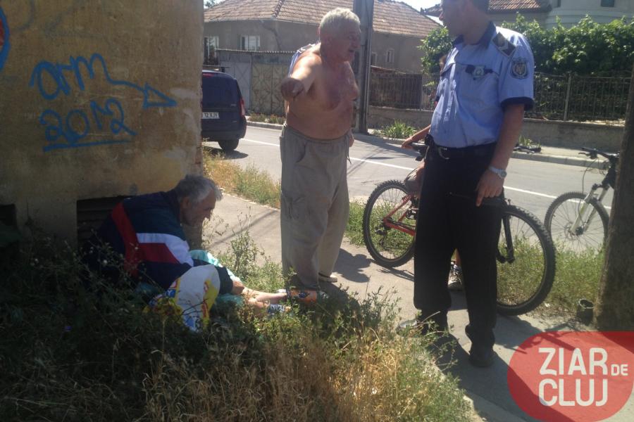 Niste copii care treceau cu bicicleta pe strada l-au ajutat sa se traga mai la umbra, vecinii i-au adus sanviciuri si au inceput sa dea telefoane.