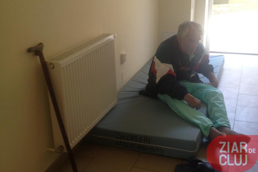 Se merge incet, timp in care vecinii ies sa isi strige indignarea la adresa asistentelor de la centru. Se vocifereaza de o parte si de alta, omul e dus la parterul institutiei si pus pe o saltea. Vrea sa vorbeasca cu presa, a aparut intre timp si un reporter de la TVR Cluj.