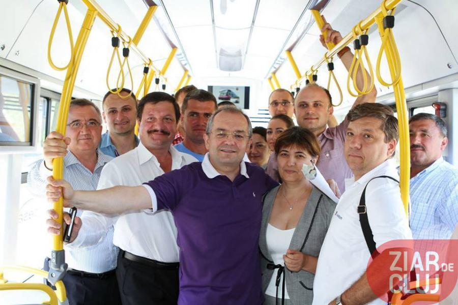 La inaugurarea liniei de tramvai din 5 august, Emil Boc s-a abtinut sa mai conduca vehiculul polonez, dar a venit la prima calatorie cu tot alaiul din Primarie.