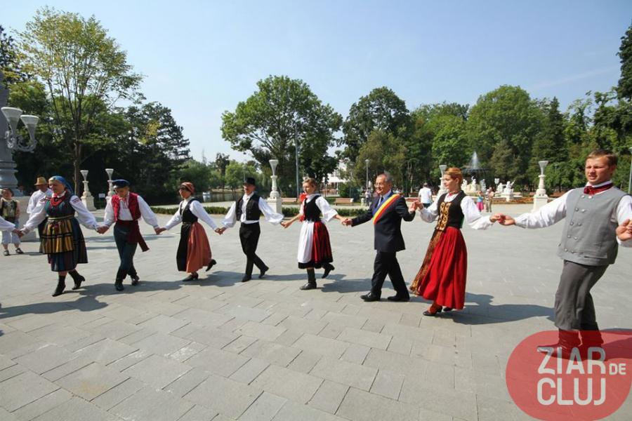 La debutul Zilelor Culturale Maghiare, Emil Boc a ciocnit un pahar de sampanie cu participantii festivalului folcloric international Sf. Stefan si nu a ezitat sa se bage in hora incinsa in fata Cazino-ului.