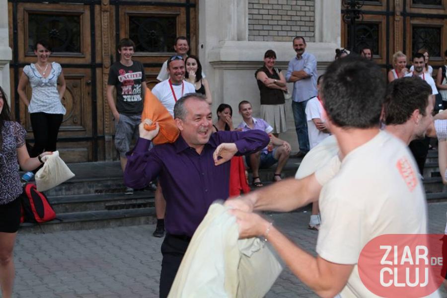 Edilul a mai bifat cateva comisii, dezbateri si intalniri pe diverse teme inaintea sa dea startul raliului Clujului si sa asculte Jazz in Parcul Central. Una dintre cele mai memorabile iesiri in public a fost, totusi, bataia cu perne de pe strada Kogalniceanu, imortalizata in albumul “Tineretea este o stare de spirit – Cluj Never Sleeps”.