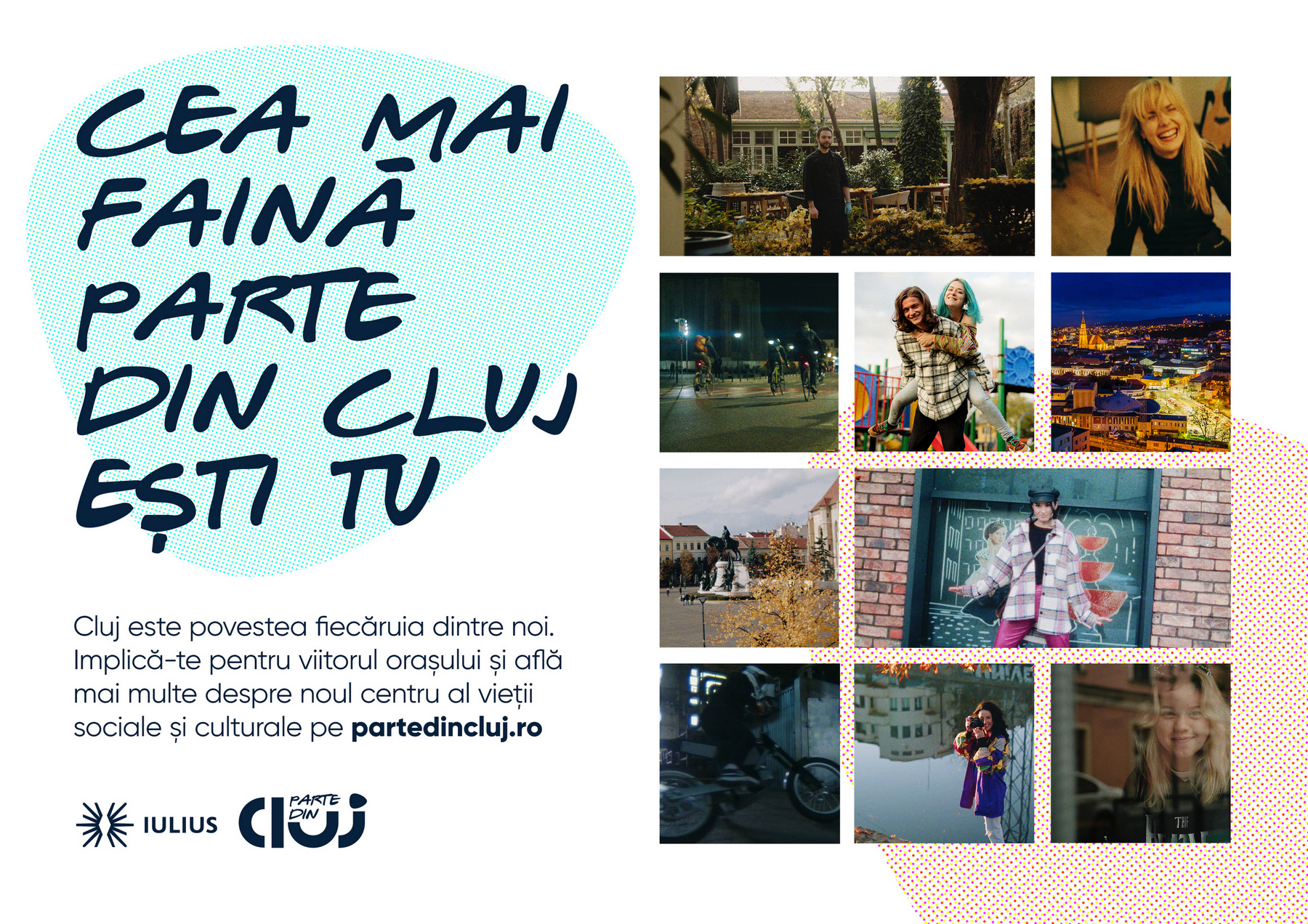 De 15 ani, IULIUS este parte din Cluj, parte din cum a crescut orașul și din ce a devenit. Ne dorim ca acolo unde s-au scris capitole din povestea Clujului, să continuăm să dezvoltăm. Ne dorim să reconvertim platforma Carbochim, aflată la câteva minute de centrul orașului, într-un spațiu al întregii comunități. O Parte din Cluj. Un proiect al oamenilor se construiește după vocea comunității, pe care vrem să o facem auzită. Platforma online www.partedincluj.ro reunește gândurile, ideile, perspectivele despre Clujul real și traiectoria lui de dezvoltare. „Cea mai faină parte din Cluj ești tu” și vrem să fii parte din noua parte a Clujului, vrem să știm ce îți dorești să devină acest loc. Vrem să ni-l imaginăm împreună. Intră pe www.partedincluj.ro și lasă-ne să-ți știm părerea!