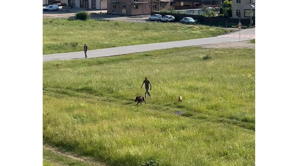 S-a intervenit rapid cu ajutorul unui câine de vânătoare specializat până când mistrețul a ajuns înapoi în pădure.