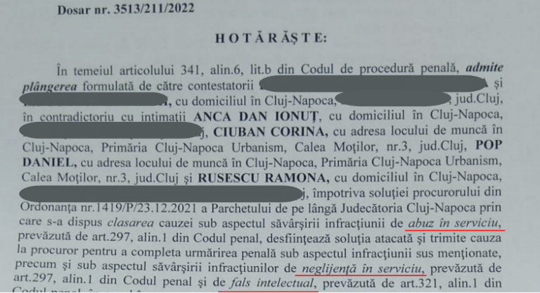 Așteptăm cu un interes deosebit ce OSĂ zică Boc și după acest proces. Că cu ”procurorii” Clujului (mai ales cei DNA care dormitează în sediul pus la dispoziție și renovat de câte ori e nevoie chiar de către edilul șef și care mai au câte un soțior angajați la ptima de osânză), ne-am lămurit: execută numai ce li se spune să execute. După cum se vede și din document, în pofida evidenței, procurorul de caz s-a și repezit, slugarnic, cu clasarea.