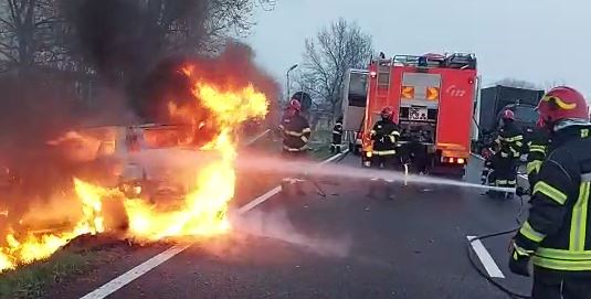 La autoturism s-a produs și un incendiu care s-a manifestat generalizat.