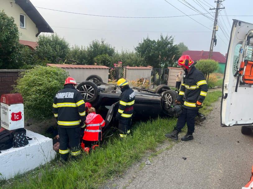 Pompierii de la Detașamentul Dej au avut de lucru în această dimineață. În jurul orei 06:30 s-au deplasat în localitatea Fundătura, unde o mașină a ajuns în șanț, răsturnată.