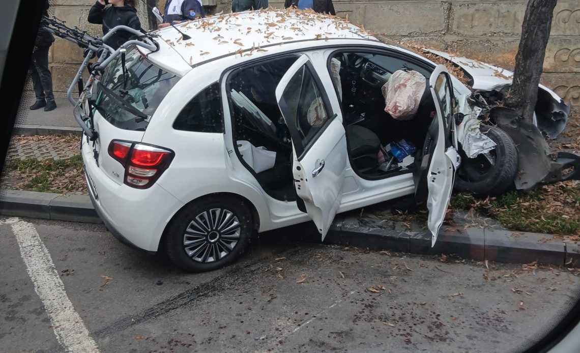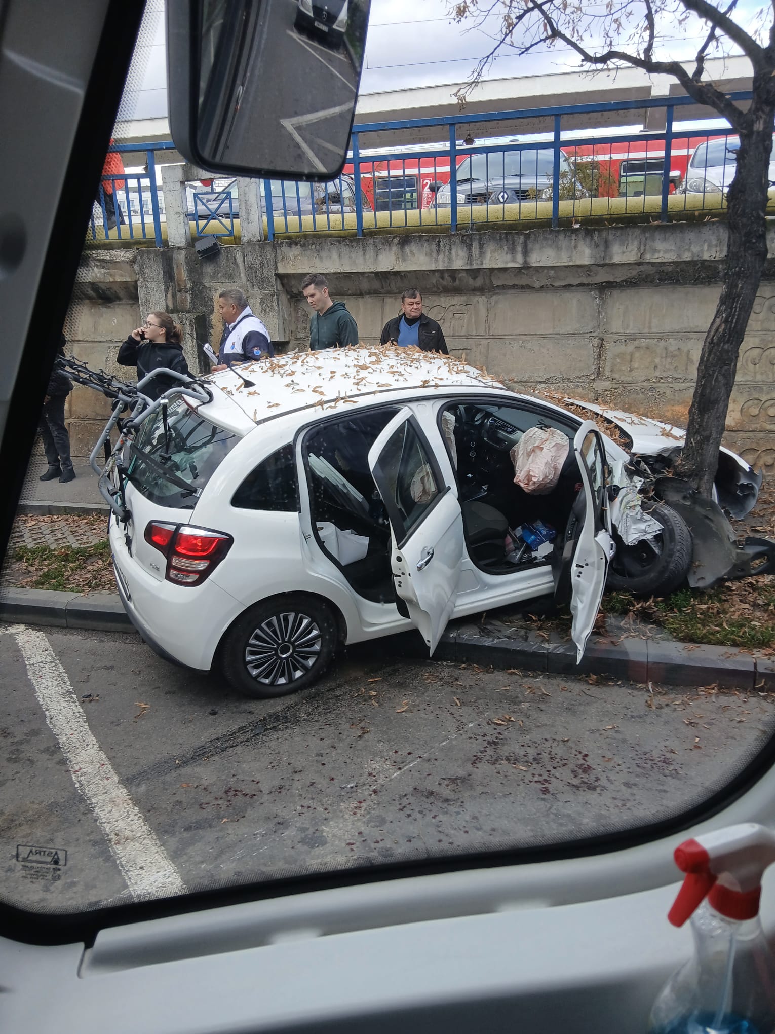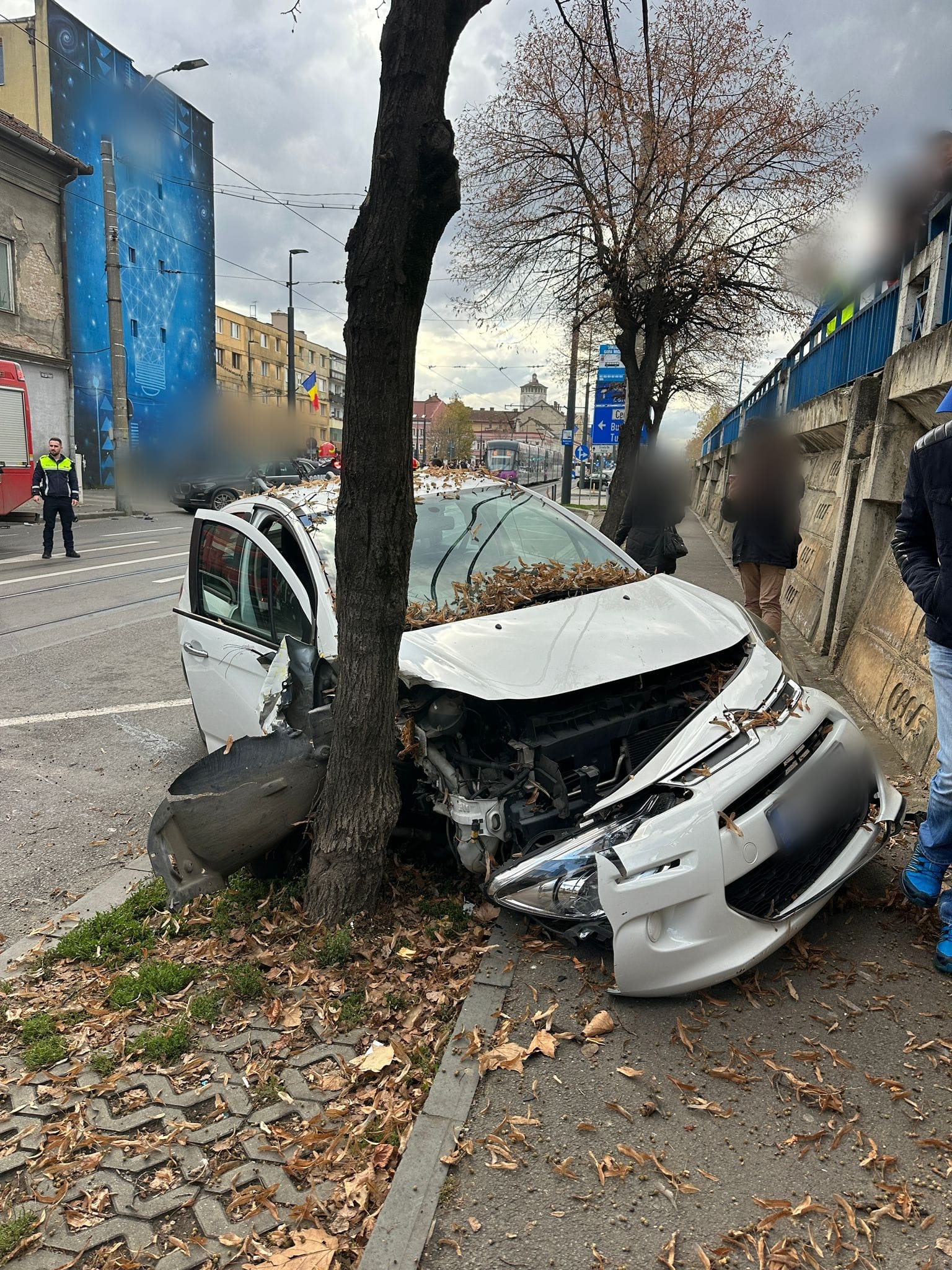 Accident grav pe strada Căii Ferate. O mașină s-a oprit într-un copac