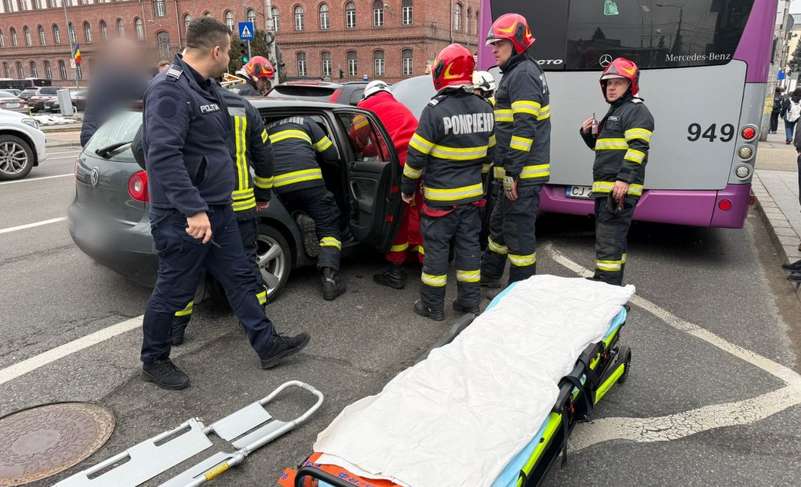 Pompierii din cadrul Detașamentului 1 Cluj-Napoca intervin în aceste momente la un accident rutier petrecut în Piața Cipariu din municipiul Cluj-Napoca.