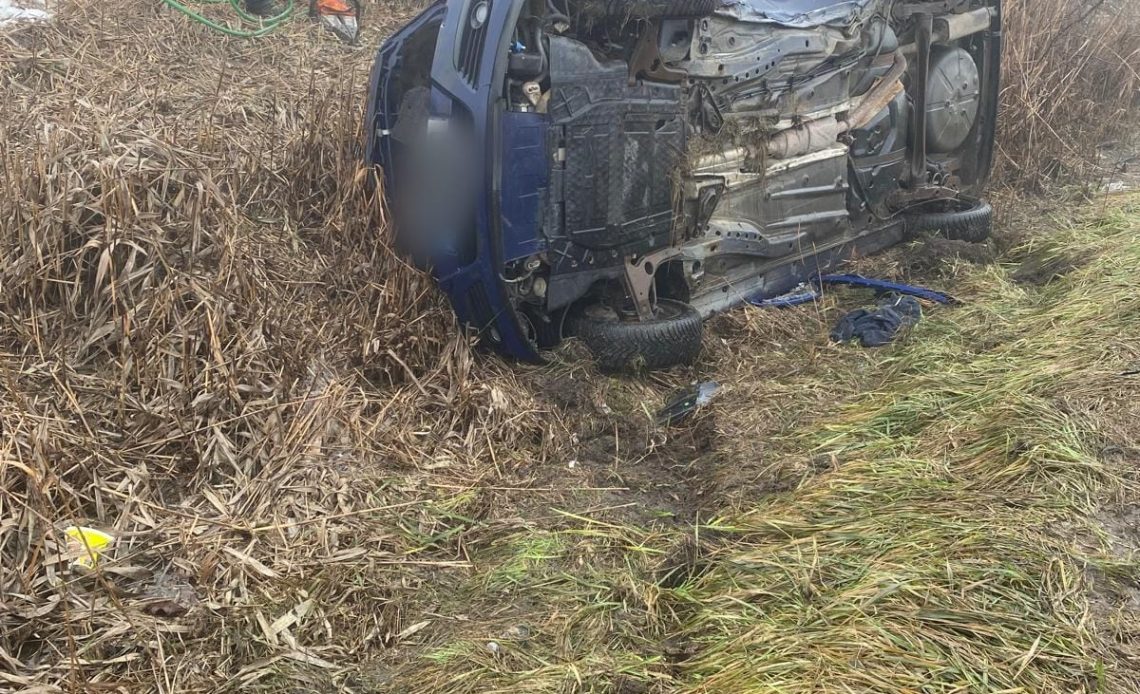 Accident la ieșirea din Huedin. O mașină s-a răsturnat în șanț