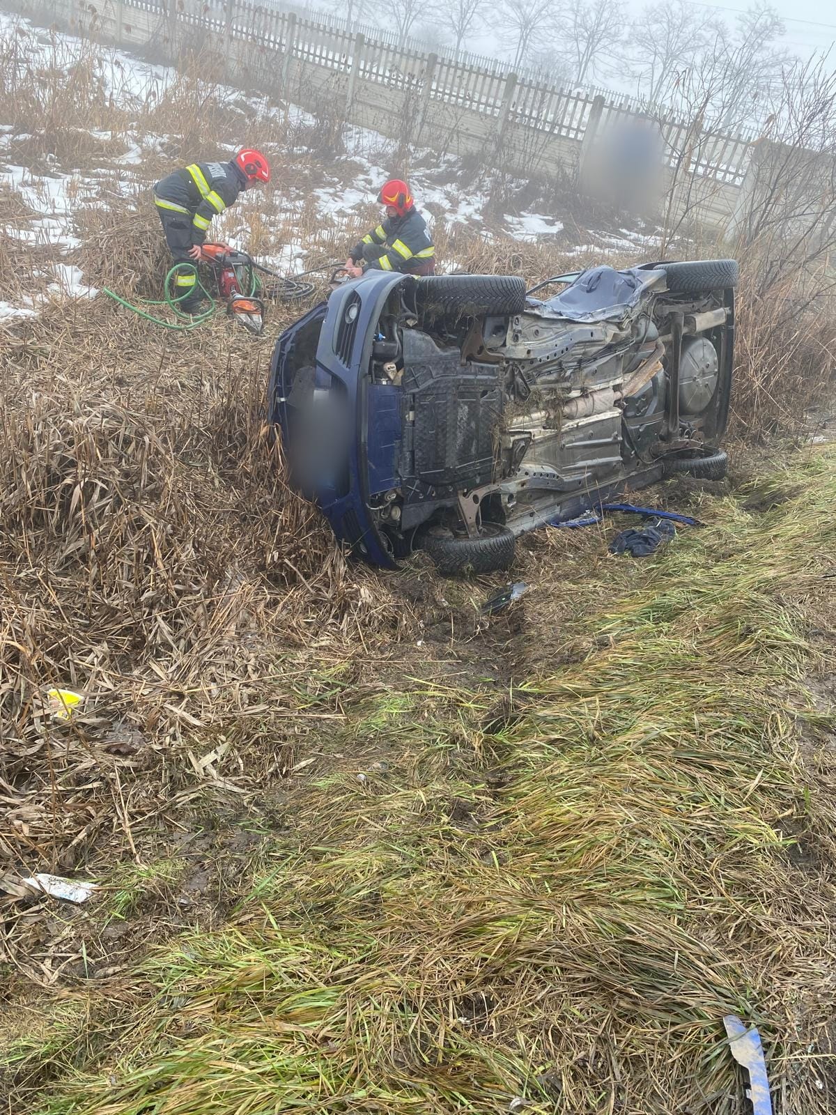 În accident au fost implicate două autoturisme, dintre care unul era răsturnat. În interior s-a aflat un bărbat încarcerat, pe care forțele noastre l-au extras folosind echipamentele din dotare.
