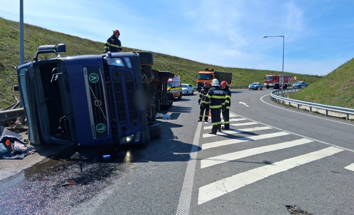 A fost găsit la fața locului un autotren răsturnat, însă din fericire nu au existat victime încarcerate.
