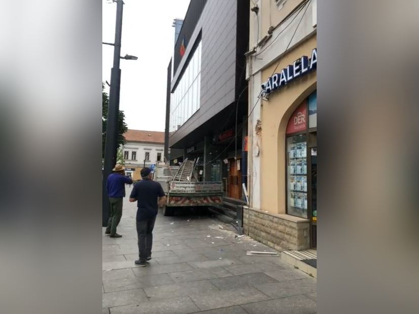 Accident pe Regele Ferdinand, în față la Central: șoferul a pierdut controlul volanului și a intrat pe trotuar