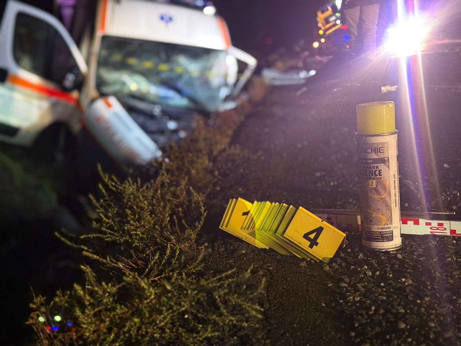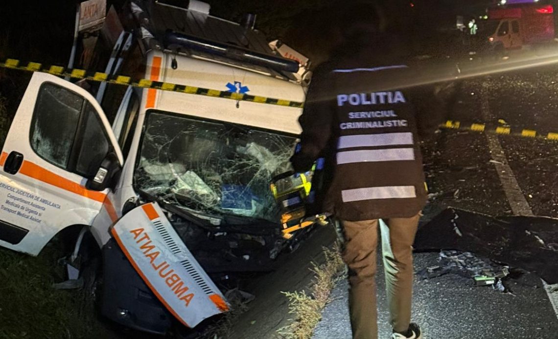 În ambulanță se aflau doi membri ai echipajului și un pacient.