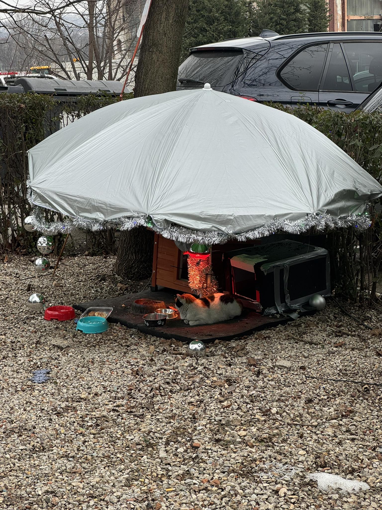 „Pe un șantier din Cluj am vazut astazi cel mai frumos „adăpost de lux”, amenajat de catre angajatii firmei de constructii”, este mesajul celei care a suprins poza.