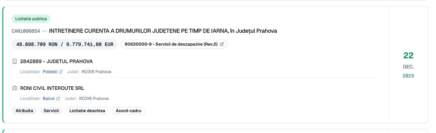 E iarasi sarbatoare. Dar nu pentru romanii care sunt cocositi de suprataxele si impozitele marite marca Ilie Saracie, ci pentru cei cativa romani smecheri care au firme “agreate” sa se infrupte din banii publici dati de Consiliile Judetene la ordinul baronilor locali. Pe timp de iarna, astia isi fac plinul din “servicii de deszapezire” cat pentru un an intreg. Ca cine verifica daca, atunci cand va ninge, o sa arunce 2000 de tone de sare cat au promis sau doar 400? Profitul e mai bun ca la vanzarea de cocaina, chiar daca firmele de casa trebuie sa imparta potul cu baronii si partidele politice.