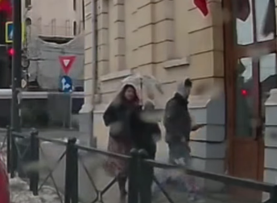 Bucățile de gheață s-au desprins de pe acoperiș imediat după ce pietonii au trecut prin fața liceului.