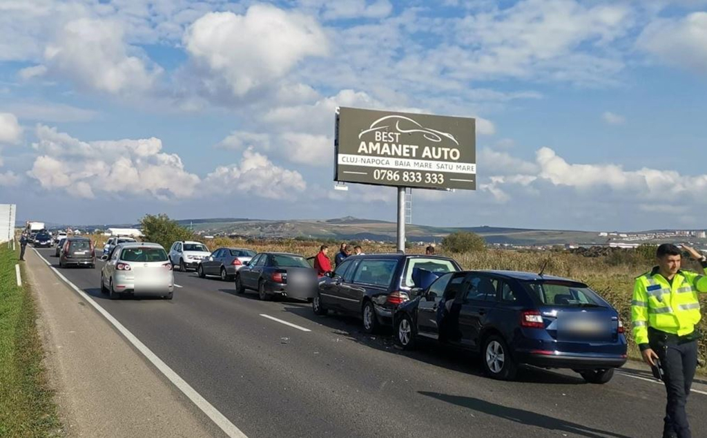 Pompierii au intervenit la un accident rutier petrecut pe centura Vâlcele-Apahida, între patru mașini, inclusiv una de pompe funebre. O femeie a fost rănită grav.