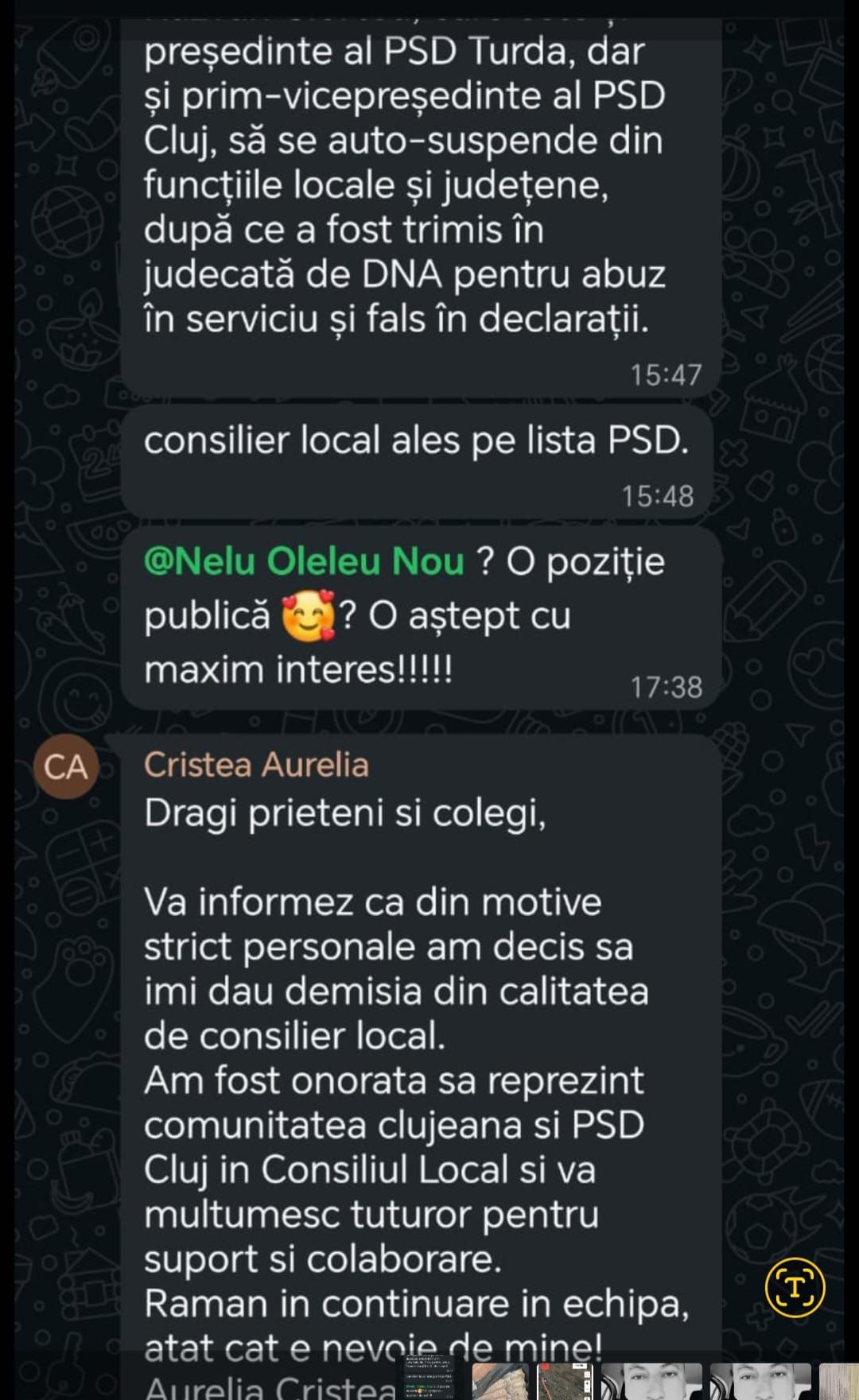 Aurelia Cristea, și-a anunțat azi demisia din funcția de consilier local, invocând „motive personale”. Abonare la newsletter: Trimite Share