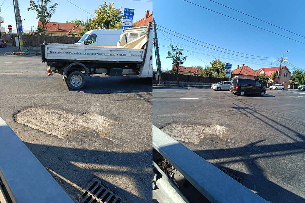 Însă, în buna tradiție a fiecărei lucrări făcute de municipalitatea clujeană, o porțiune de aproximativ trei mp a rămas așa, neasfaltată. Dar nici semnalizată ca atare: groapă, bă, fraiere de contribuabil care-ți faci mașina praf!