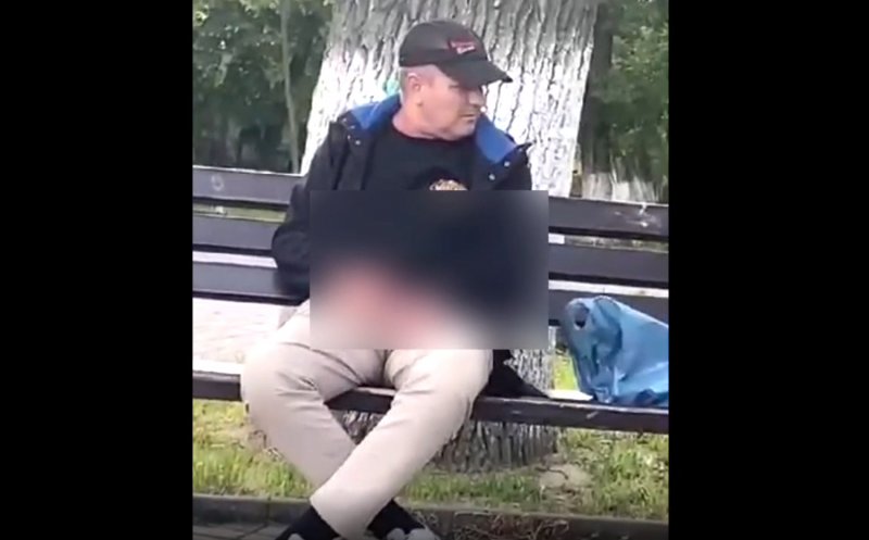 Bărbatul, trecut de prima tinereţe, este surprins în filmare pe o bancă tocmai în Parcul Central al municipiului Turda, din judeţul Cluj, în timp ce iniţial ţine mâna în pantaloni, iar apoi are organul sexual scos din pantaloni şi se masturbează, uitându-se în stânga și în dreapta.