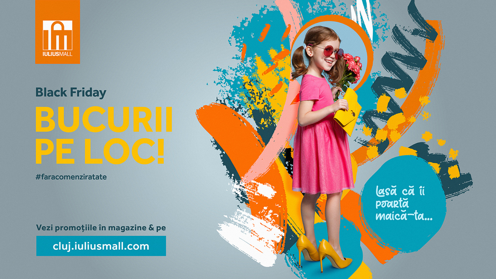 Noiembrie este o lună plină de surprize și nu ne uimește doar cu temperaturile și culorile sale plăcute, ci și cu mult așteptatul Black Friday, momentul în care îți transformi lista de dorințe în realitate. La Iulius Mall Cluj, între 11 – 13 noiembrie 2022, ai parte de trei zile de „vineri” în aceeași săptămână, care îți aduc „BUCURII PE LOC”. Cu reduceri de până la 70% s-au pregătit atât brandurile de haine, accesorii și încălțăminte, cât și cele cu decorațiuni, produse de îngrijire și frumusețe, articole pentru copii sau sportive și, desigur, cele de electronice și electrocasnice. Consultă catalogul online și hai să te bucuri că anul acesta e #faracomenziratate.