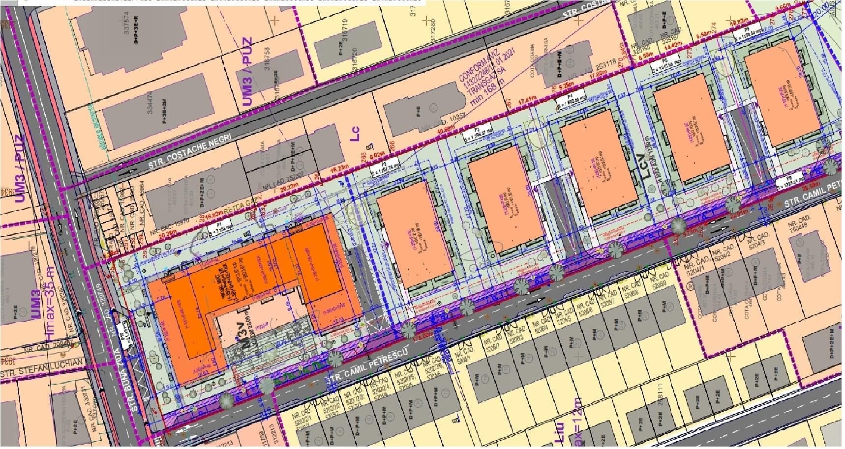 Pe site-ul Primariei a aparut spre consultare anterior intrarii in HCL, un PUZ in zona strazii Camil Petrescu, PUZ care propune un bloc P+4E+Er la strada Buna Ziua, respectiv 5 blocuri S+P+2E in spate.