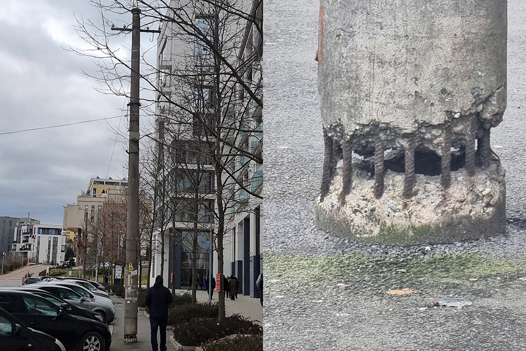 Normal, nimeni nu-şi va asuma să îndepărteze pericolul pe care-l reprezintă acest stâlp. Municipalitatea va zice că „Electrica”, de acolo se poate pasa către: „Distribuţie” sau „Furnizare-Facturare” şamd. După cum arată „lucrarea” de lângă clădirea FSEGA, cândva, cineva s-a gândit că stâlpul trebuie îndepăratat şi l-a luat la pikamer în speranţa că va veni cineva cu un flex şi nişte utilaje şi cu flexul v-a tăia armătura, iar cu utilajele îl vor cala, să nu cadă în capul cuiva, apoi îl vor duce undeva spre veşnică odihnă.