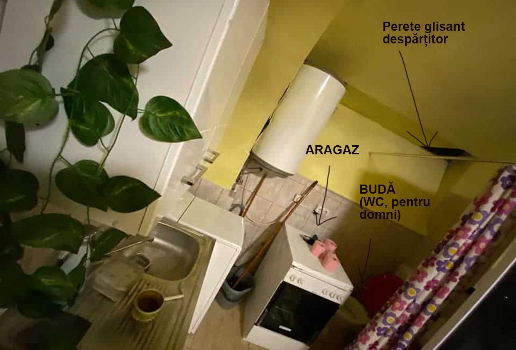 Pentru ”decât” 250 de euro pe lună, un clujean anunță că închiriază o garsonieră la subsol pe strada Emil Zola nr. 2, în Piața Muzeului, din centrul municipiului Cluj-Napoca. Din fotografiile postate se vede că avem de-a face cu un adevărat donjon, parte probabilă a unei pivnițe la care i s-a ”amenajat” un WC lângă aragaz, despărțite de o perdea colorată.