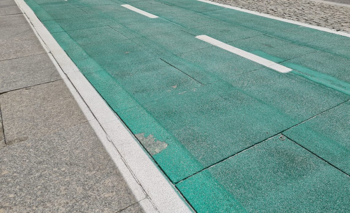 În urmă cu o lună, pe aceste piste verdele dispăruse aproape cu totul, așa că, recent, RADP Cluj-Napoca, regia din subordinea municipalității, le-a revopsit, ca să nu se mai plângă clujenii că nu le e verde orașul, tocmai acuma, vara!