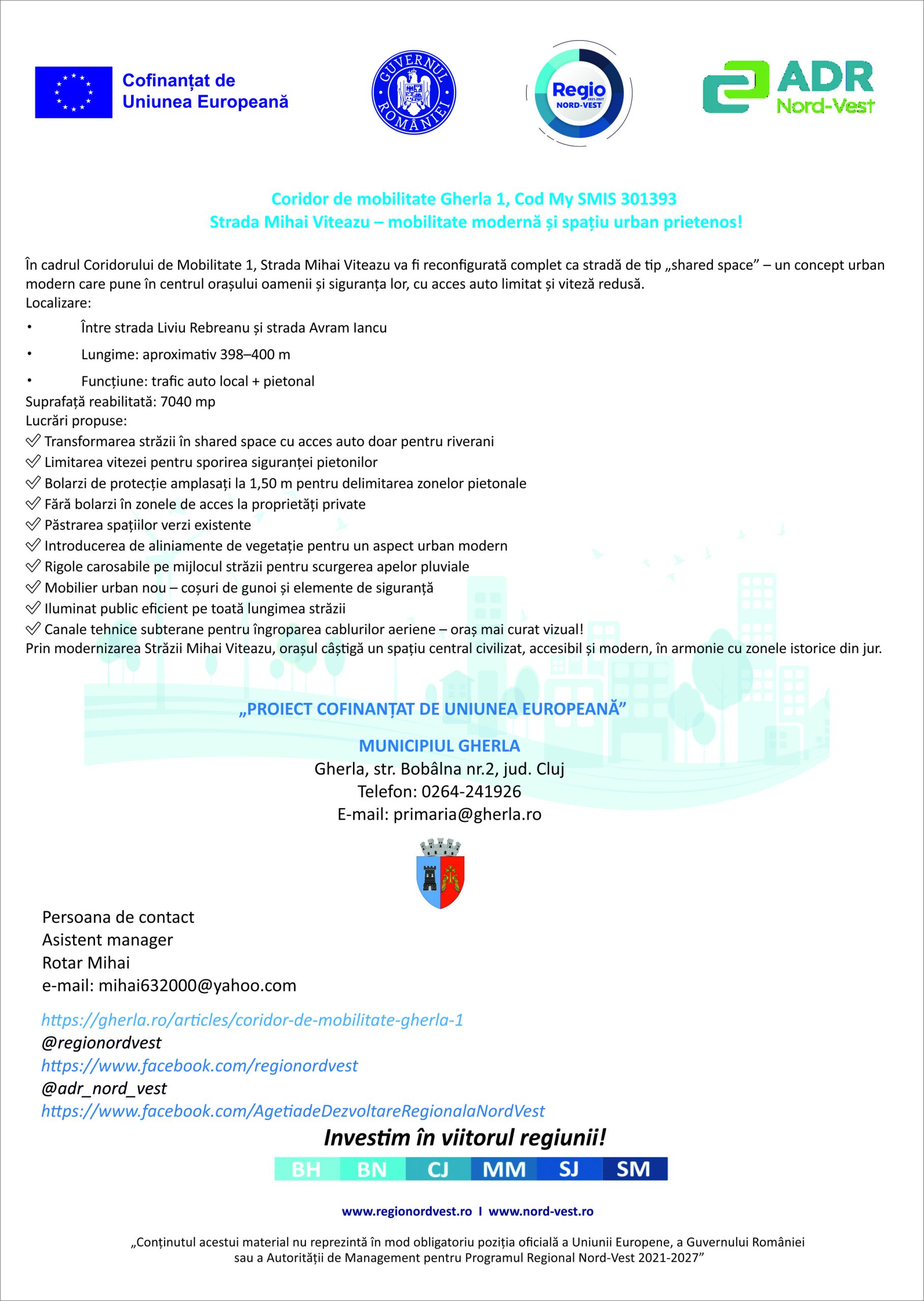 Coridor de mobilitate Gherla 1 – Strada Mihai Viteazu – mobilitate modernă și spațiu urban prietenos