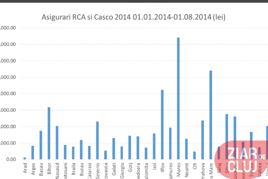 Pentru Asigurari RCA si Casco, in 2014, Consiliul Judetean Cluj a cheltuit peste 10.000 de lei, mai mult decat Aradul, Argesul, Botosani, Braila, Covasna, Giurgiu, Ialomita, Olt, Salaj si Valcea. In unele dintre cazuri, suma platita a fost si de doua ori mai mare.