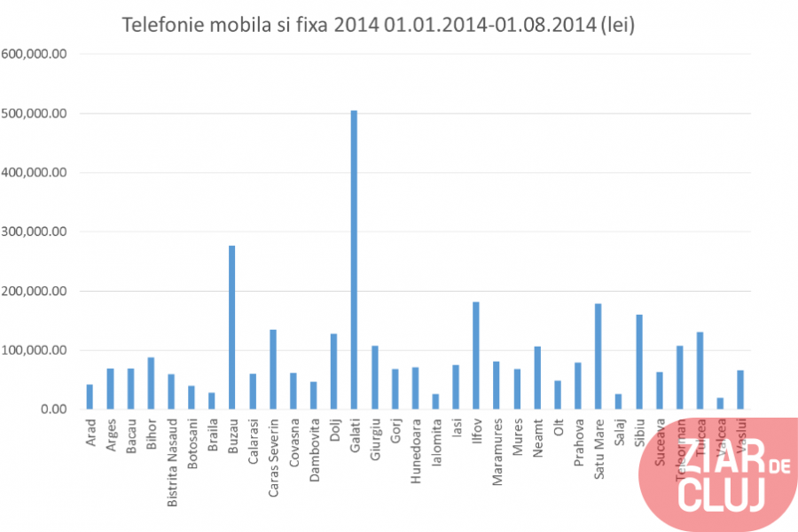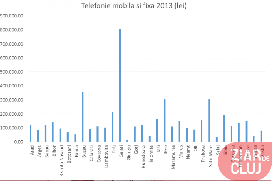 Pentru telefonie fixa si mobila, CJ Cluj a platit, in 2013, aproape 104.000 de lei. Adica si de cinci ori mai mult decat judetele Valcea, Salaj, Ialomita, Braila sau Giurgiu.