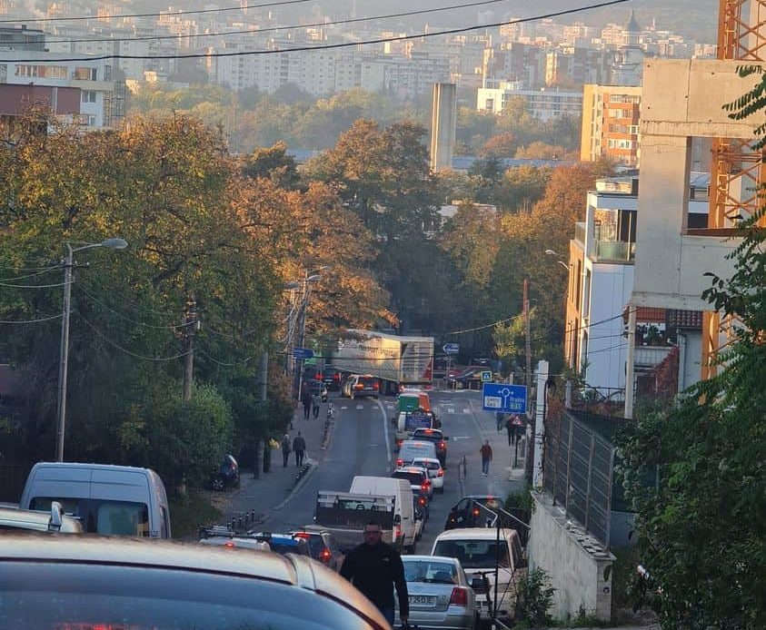 Traficul rutier este blocat luni dimineață pe Tăietura Turcului, la intersecția cu strada G-ral Eremia Grigorescu din cauza unui TIR.