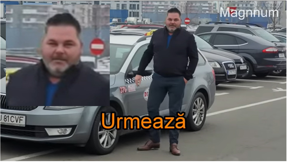 În spatele SUV-ului se observă cum un taxi întoarce, făcând aceeași manevră ilegală precum omologul său din SUV. Taximetristul trage pe dreapta și se pune în fața mașinii bistrițeanului, înjurându-l: