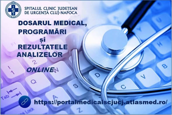 𝗗𝗼𝘀𝗮𝗿𝘂𝗹 𝗺𝗲𝗱𝗶𝗰𝗮𝗹 𝗲𝗹𝗲𝗰𝘁𝗿𝗼𝗻𝗶𝗰 𝗮𝗹 𝗽𝗮𝗰𝗶𝗲𝗻𝘁𝘂𝗹𝘂𝗶 este o soluție informatică implementată în premieră. Pacienții au posibilitatea de a vizualiza toate documentele medicale personale eliberate de SCJU Cluj (fișe de consultații, scrisori medicale și bilete de externare, rezultatele analizelor), începând cu anul 2012, până în prezent. Portalul dă posibilitatea încărcării de documente medicale eliberate de alte unități sanitare. Ulterior, pacienții pot partaja informațiile medicale și documentele cu medicii cărora le acordă acces temporar sau permanent, pentru utilizarea acestora cu scopul obținerii de informații relevante pentru stabilirea diagnosticului.