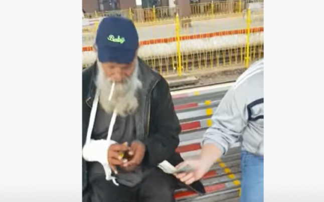 În imaginile publicate de Foaia Transilvană se poate vedea bătrânul cerşetor cu mâna în ghips, în timp ce discută cu cei doi. Unul dintre aceştia îi dă suma de 500 de lei, iar celălalt îi spune că va trebui să semneze o hârtie în care scrie că nu va avea pretenţii. De asemenea, unul dintre poliţişti susţine că-i va aduce un telefon, acesta rămânând fără după incidentul violent.