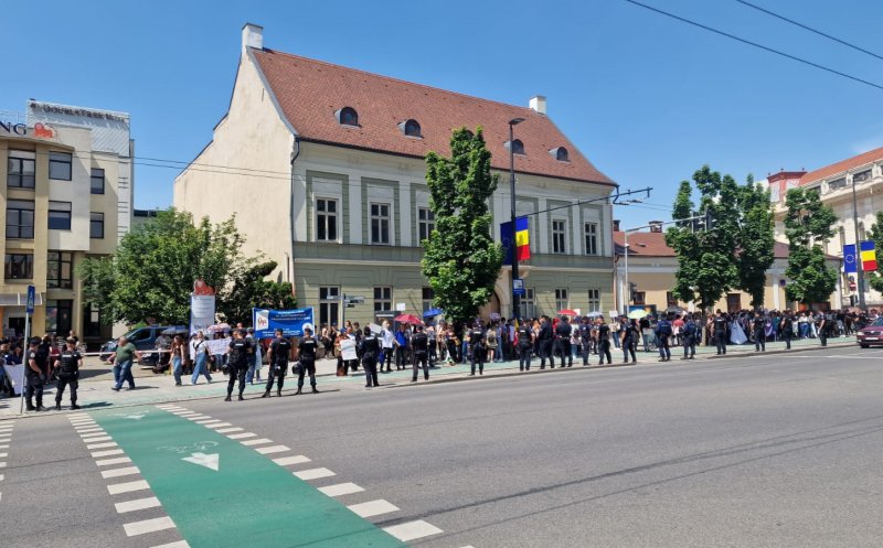 Cadrele didactice care au ieșit, joi, să protesteze în fața Prefecturii Cluj, au ajuns, de puțin timp, și în fața Primăriei Cluj-Napoca.