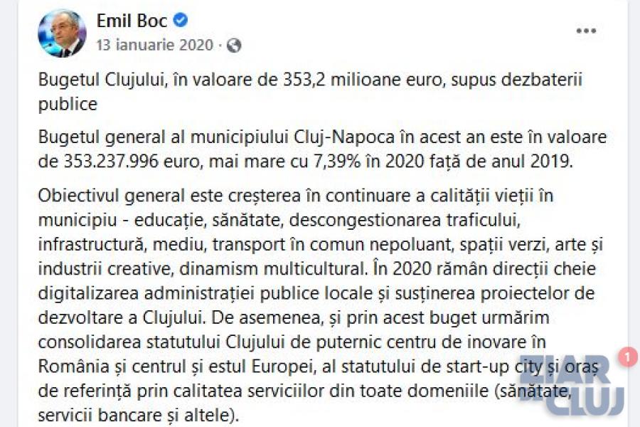 Însă Emil Boc nu mai este la fel de vocal, precum era în anii anteriori, când semnala adoptarea cu întârziere a bugetului central și tăierile bugetare ce lăsau Clujul fără milioane de euro.