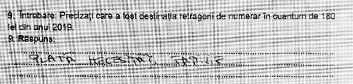 Baaaaa, vă dați seama ce angajați au ăștia la Finanțe la Cluj? O dispeceră ajunge să facă controale fiscale și să facă haram actul de verificare cu întrebări din astea! Oare șefii de la Finanțe mai știu ce au făcut cu 180 de lei în 2019?