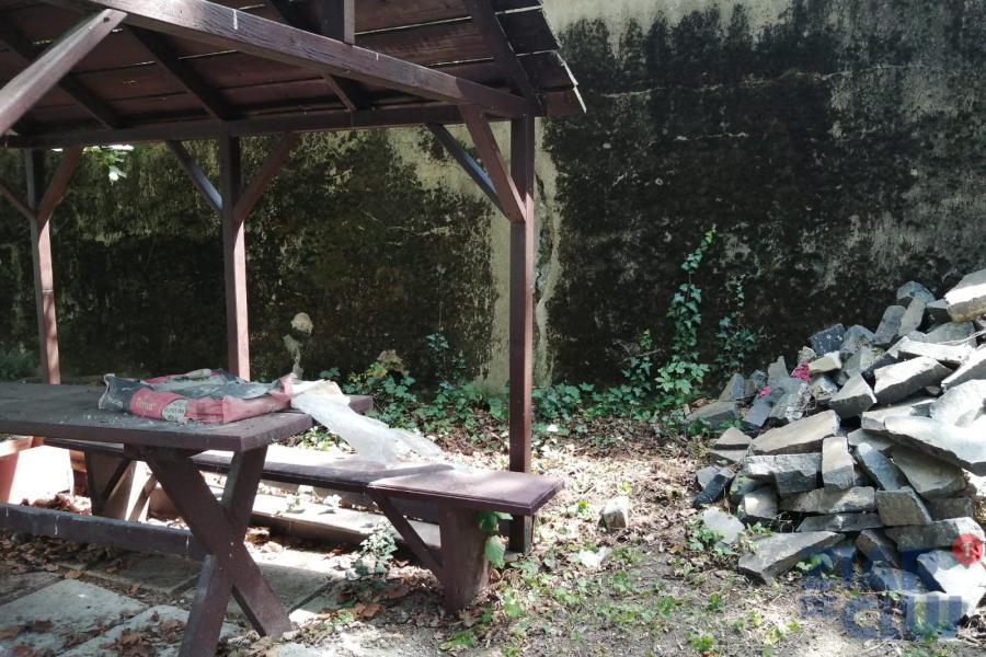 un foișor în preajma căruia se văd urmele unei lucrări neîncheiate ori abia puse la cale. Oricum, aceste imagini nu au nimic de-a face cu o grădină botanică