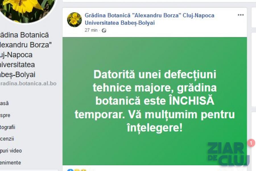 Să fii turist în Cluj și să nu vizitezi unul dintre cele mai celebre obiective, precum Grădina Botanică „Alexandru Borza”, este aproape nefiresc. În schimb, dacă te încumeți să pășești pe acest tărâm verde, cu un spațiu generos, și constați că delăsarea s-a așezat peste această minunată grădină, atunci magicul se spulberă cât ai clipi, iar feeria dispare de la sine. Recent, reprezentanții Grădinii Botanice au anunțat închiderea temporară cauzată de o „defecțiune majoră”, postare ce a fost eliminată ulterior de pe pagina oficială de socializare a acestei „instituții științifice, didactice și educative”. Cel mai probabil că defecțiunea se rezumă la nepăsare, care poate fi explicată prin intermediul unui management nepotrivit, a absenței investițiilor și multe alte cauze.