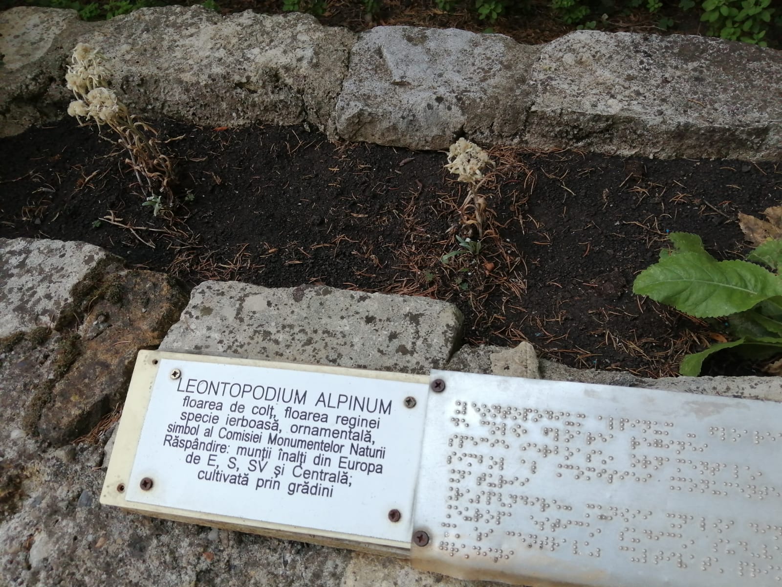 aici, din cele câteva informații inscripționate aflăm detalii prețioase despre floarea de colț, numită latinește și leontopodium alpinum.