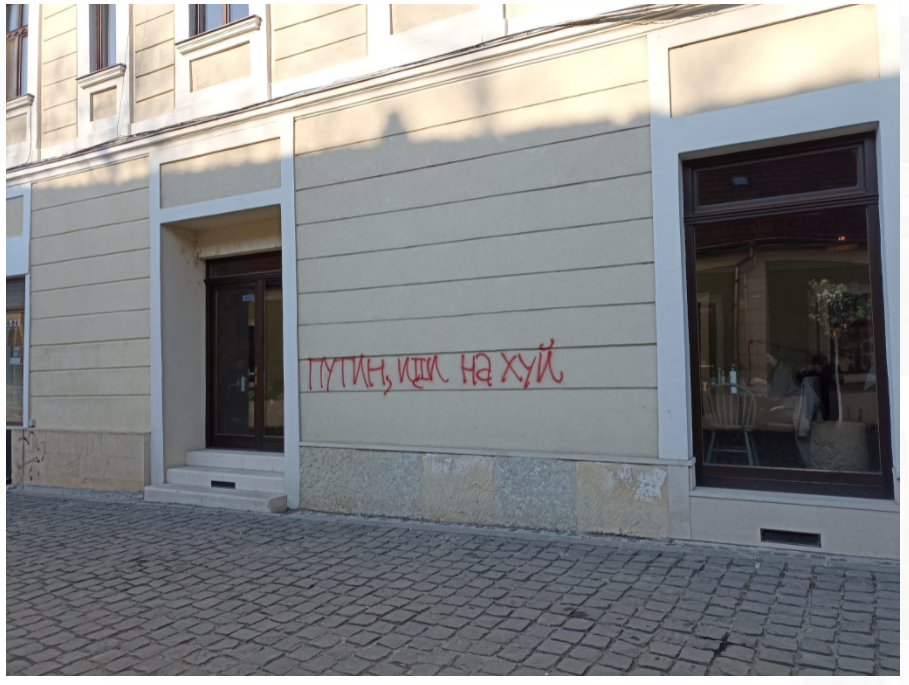 Apar mesaje tari pe zidurile clădirilor renovate din Cluj-Napoca. Autorii-grafferi nu pot fi identificați. Dar mesajul e clar: un soi de «Putin – du-te de unde-ai venit/ Putin – go f** yourself».