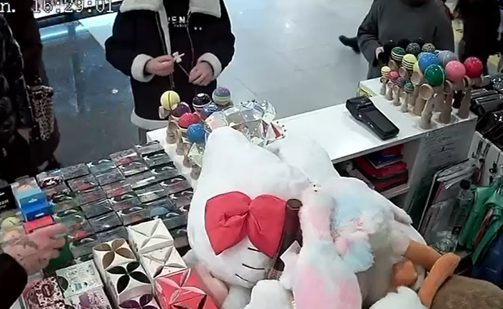 În filmarea transmisă de păgubită se observă cum sunt sustrase 7 jucării de tip kendama, valoarea totală a prejudiciului depășind 1.000 de lei.