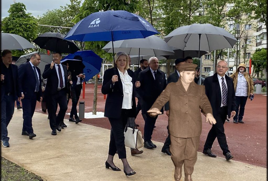 ”Apoi au plecat utilajele și a venit echipa foto-video a primarului, să nu uităm de Facebook. Politica este despre comunicare; mai nou, și administrația. Delegația a sosit într-un autocar cu ante și post mergător, de la Poliția Locală.”
